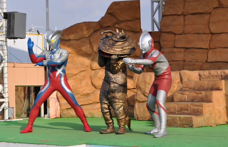 ヒーローショーはケムール人に騙されたかわいそうなカネゴンとウルトラマンがケムール人とその部下の怪獣ペギラを倒すストーリーだが、かなり盛り上がりに欠ける内容。平均年齢5-6歳の子供相手に、カネゴンを持ち出してお金の大切さを語るのも、かなり微妙。