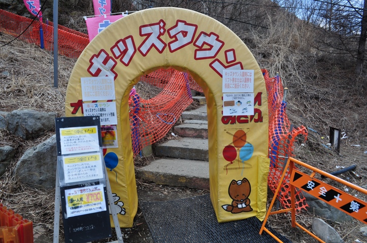 キッズのそりゲレンデは、3歳以上1人1日700円也。少々、お高いですね。入場門は、なかなか年季が入っています。