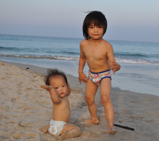 帰りに、日暮れまで海岸で砂遊びをする時間が取れて、子供たちはそっちのほうが楽しかった様子。もともと、海水浴の準備はしていなかったので、パンツ一丁で海岸へ。こういうのも子供の時ならでは、、でいいのかな?