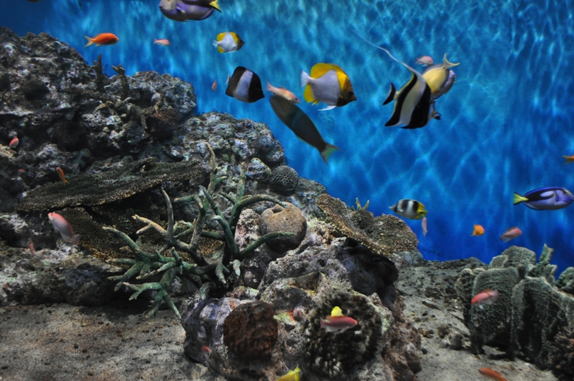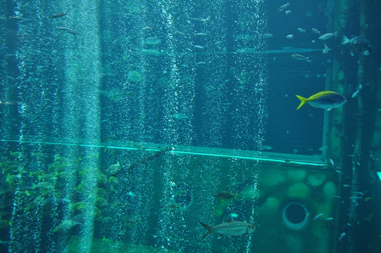 10:15大水槽での水中ショー、ダイバー登場。餌を追って、カラフルな魚が舞い踊る。飽きたので以上で終了。チーン。