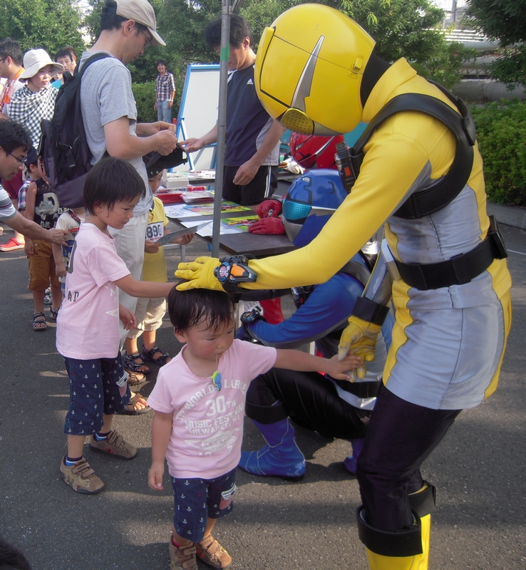 地域のイベントでどのくらいちゃんとしたヒーローがでてくるかと思いましたが、なかなか立派な構成でしたよ。カブトとクワガタ、いやビートバスターとスタッグバスターも登場し、きっちり5人そろって決めポーズ。