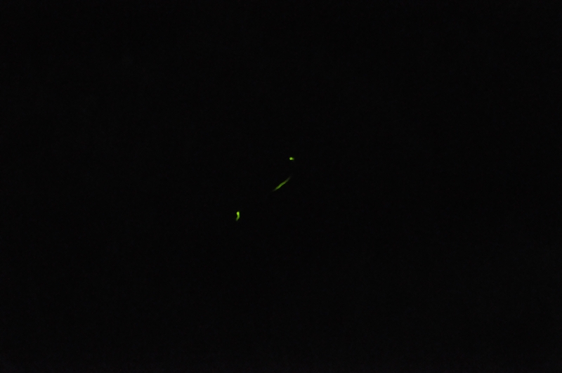 今回、初めて飛んでいる蛍を撮ってみました。 (ISO感度最大=12800相当、F5.6、露光時間8秒) ファインダー内に蛍が来てくれるかどうかは運次第ですが、次回もう少しマシなものが撮れるようにがんばってみようと思います。